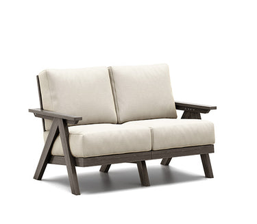 Bring architectural elegance and weather-defying resilience to your patio with the Ava Cushion Loveseat by Homecrest. Its HDPE frame mimics the warm, timeworn appeal of natural wood without the maintenance headaches. Standing strong against sun, rain, and your toughest outdoor conditions. Climb into the ultra-comfortable DreamCore cushions, crafted to be plush yet supportive, quick-drying, and mildew-resistant. Perfect for lazy mornings with coffee or lively evenings with friends. Customize your look through a wide range of fabric grades and frame finishes. Proudly American-made, this loveseat isn’t just furniture. It’s an invitation to linger.
